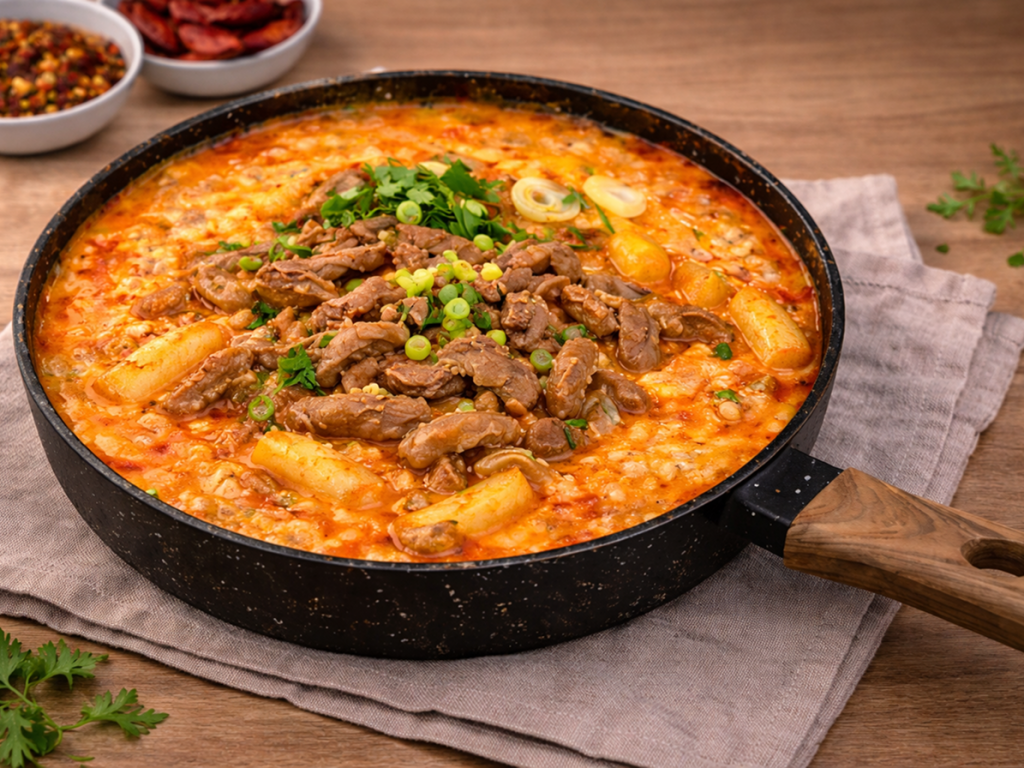 beef slices, rice cake, fish cake, mala sauce, garlic, garlic oil,