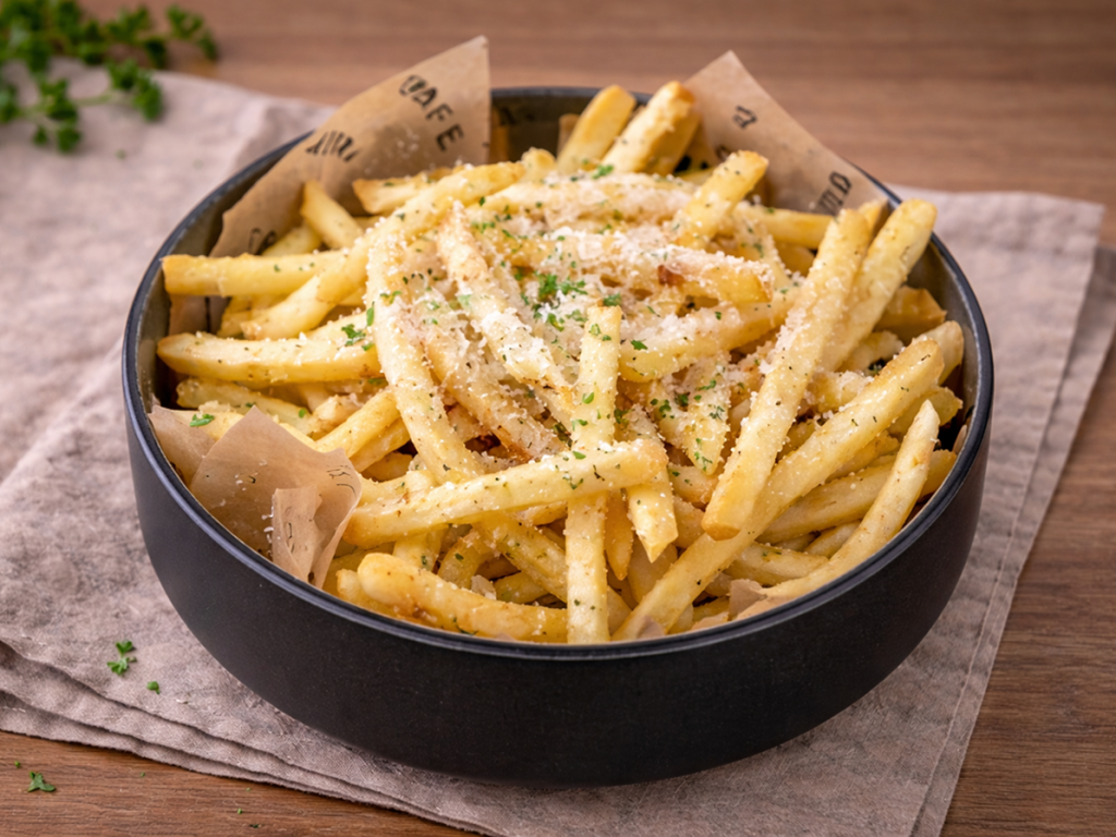fries, truffle oil, parsley, parmesan