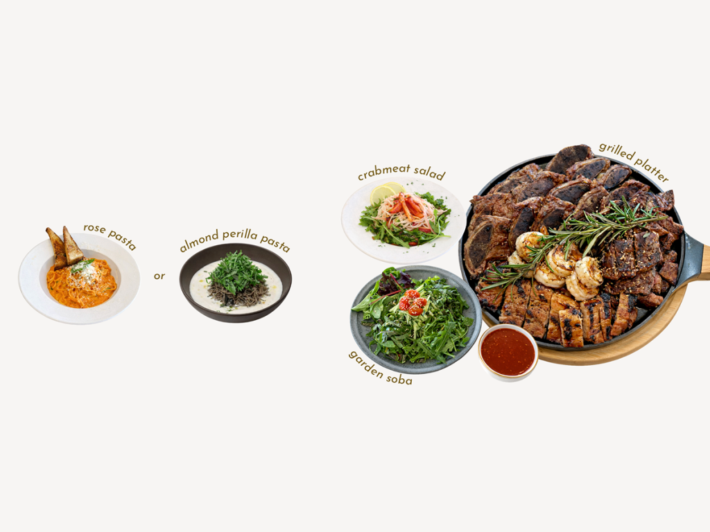 creamy rose, spaghetti, garlic toast, basil, parmesan, pickle